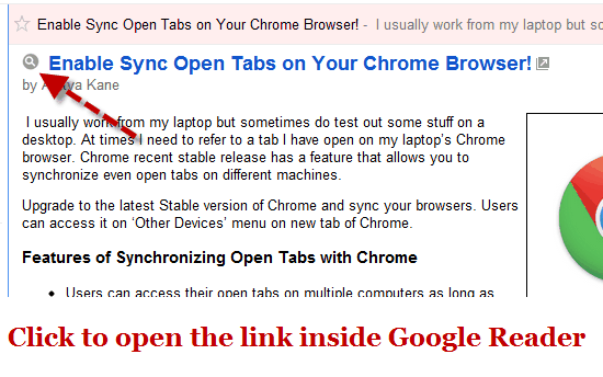 | Following a blog on RSS reader is a great way to keep track of your blog subscriptions. I literally follow hundreds of blogs and never feel overwhelmed thanks to Google Reader. Reading a post on Google Reader is usually a great experiance, especially if the content is complete. Unfortunately sometimes the content is only a description or introduction and one has to click on the title link of the post to open it on a different tab of the browser. If you are using Chrome, then you might find Google Reader Inline Extension quite handy. Open Original Post Links Inside Google Reader