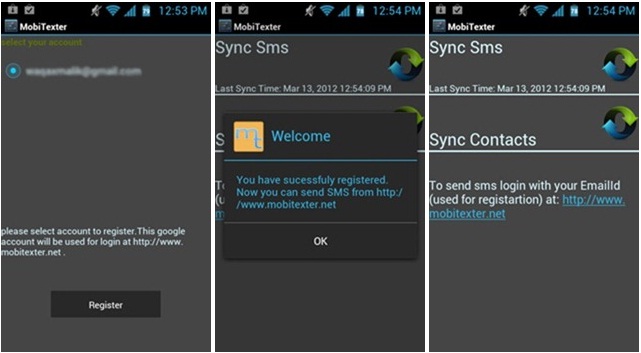 | An Android App which enables you to send, receive and view text messages on your Android device from your desktop browser. That is exactly what MobiTexter app is all about. The App basically synchronizes the Contacts and SMS to your existing Gmail account and give you complete control from your PC. MobiTexter is completely free (even without ads)and the message gets delivered instantly so you do not have to worry about any delivery reports. How it works: